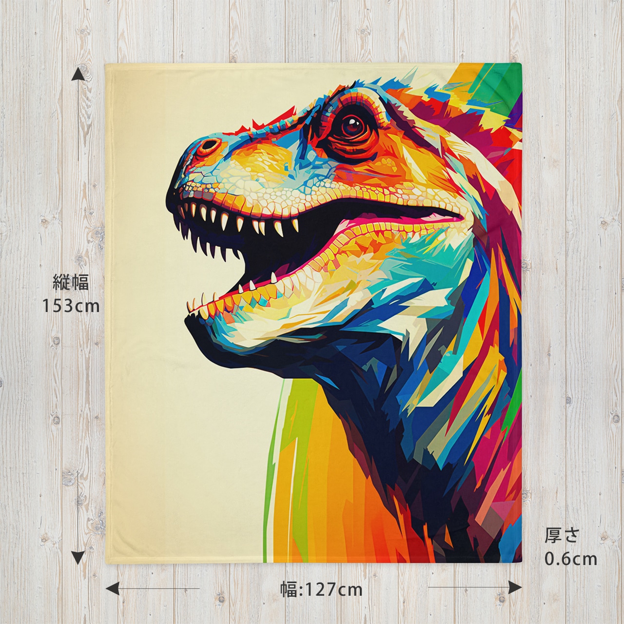 恐竜好きの為の、楽しいカラフルなひざかけが登場しました。鮮やかなデザインで描かれたティラノサウルスは、子供から大人まで楽しめます。