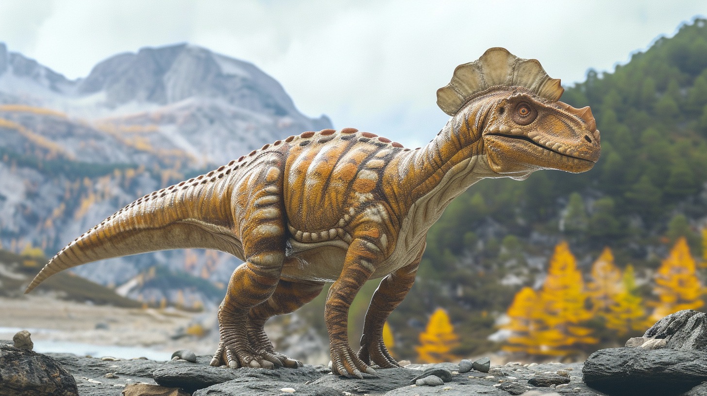Midjourney(ミッドジャーニー)で作成したランベオサウルスが描かれたフリー素材画像です。画像を購入した方は、クレジット表記やリンクは一切不要で個人・商用問わずお使い頂けます。迫力あるリアルな恐竜の写真をぜひフリー素材画像としてお使い下さい。