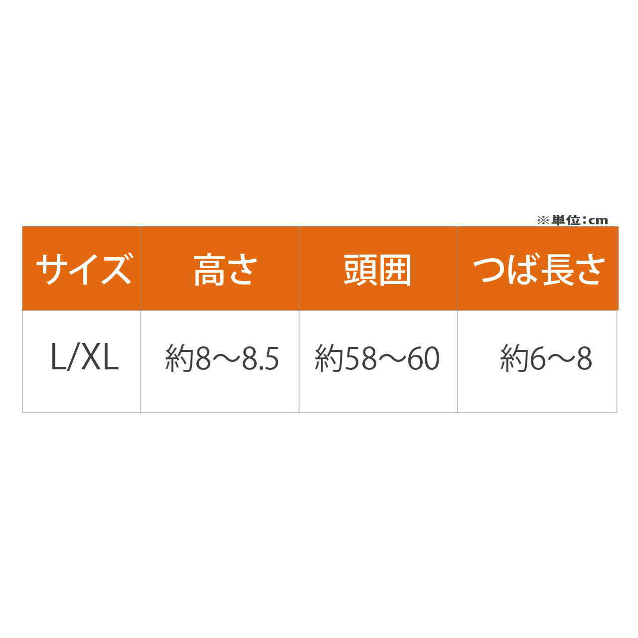 L/XL:高さ:約8〜8.5 頭囲:約58〜60 つば長さ:約6〜8