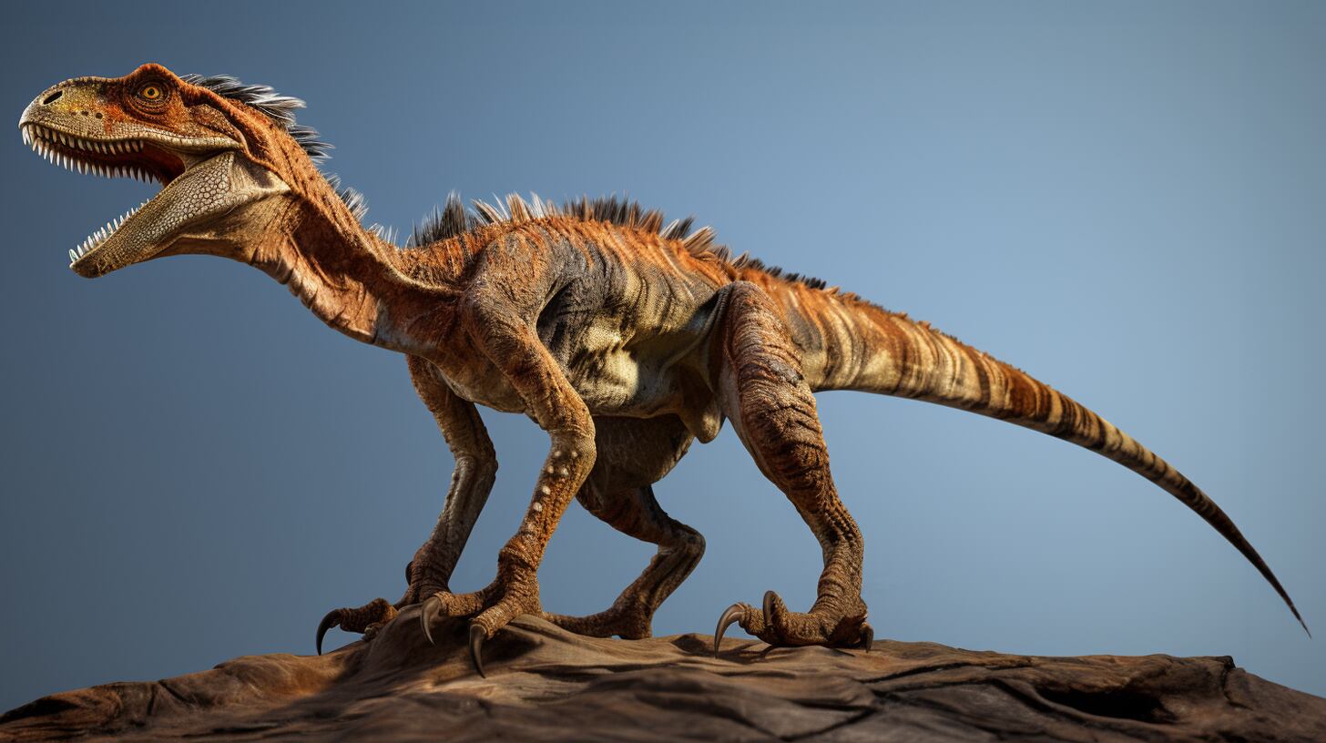 画像生成AI Midjourney(ミッドジャーニー)で作成した荒野の広がる中、リアルなヴェロキラプトルを描いたフリー素材画像です。画像を購入した方は、クレジット表記やリンクは一切不要で個人・商用問わずお使い頂けます。迫力あるリアルな恐竜の写真をぜひフリー素材画像としてお使い下さい。