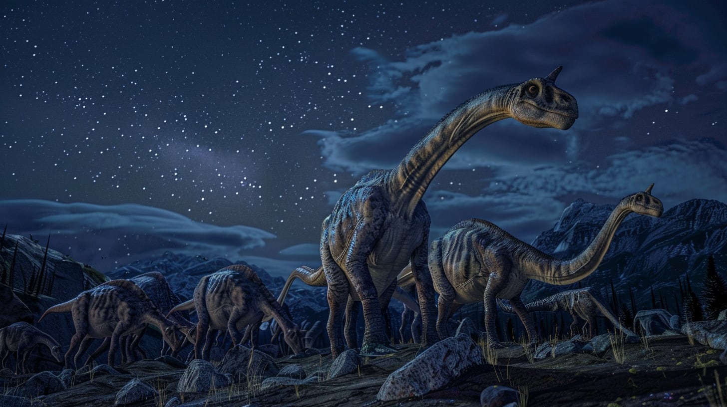 画像生成AI Midjourney(ミッドジャーニー)で創られた、サウロロフスの群れが移動する姿が描かれたフリー素材画像です。です。画像を購入した方は、クレジット表記やリンクは一切不要で個人・商用問わずお使い頂けます。迫力あるリアルな恐竜の写真をぜひフリー素材画像としてお使い下さい。
