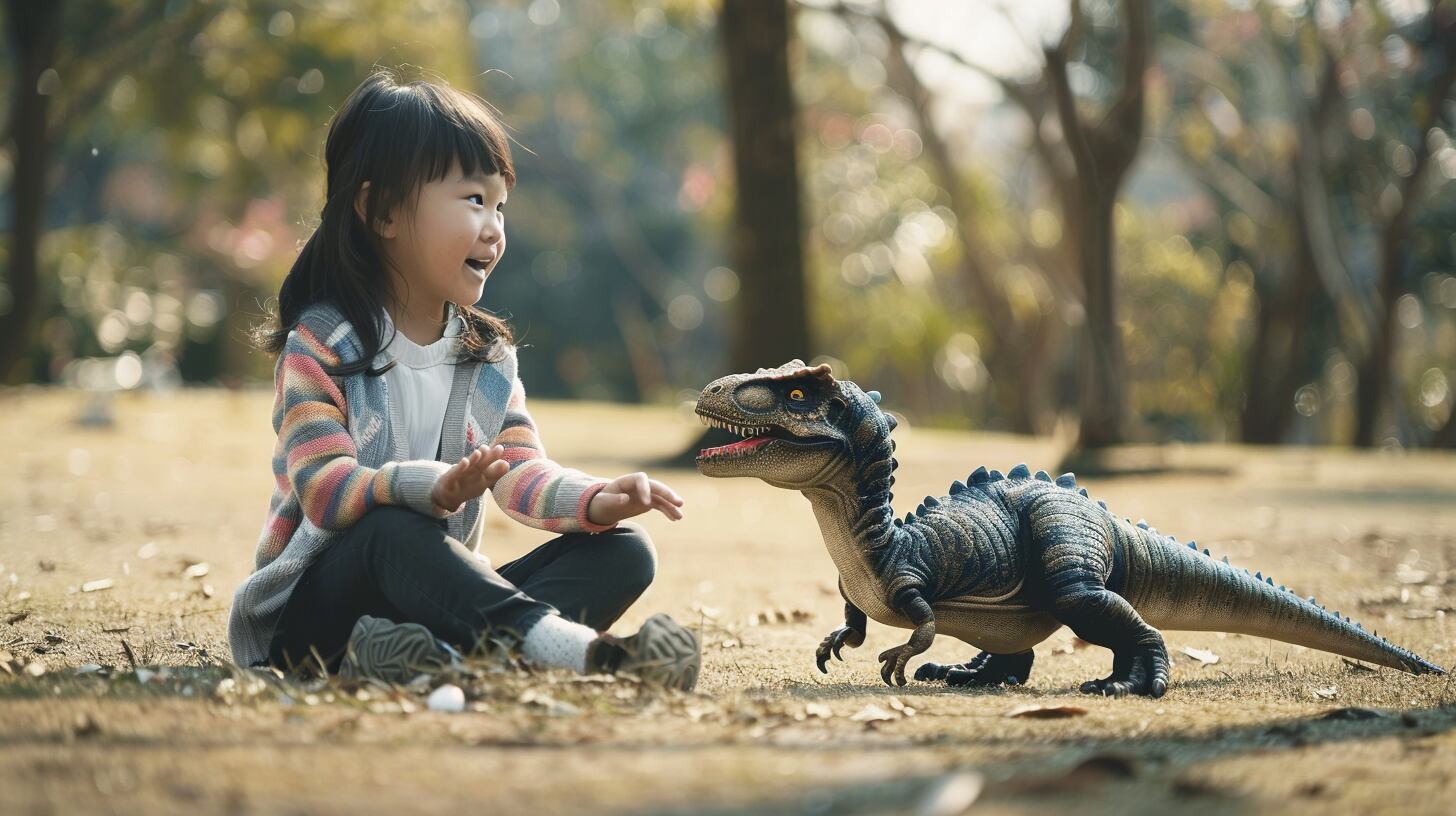 画像生成AI Midjourney(ミッドジャーニー)で創られた、恐竜とキッズのフリー素材画像です。です。画像を購入した方は、クレジット表記やリンクは一切不要で個人・商用問わずお使い頂けます。迫力あるリアルな恐竜の写真をぜひフリー素材画像としてお使い下さい。