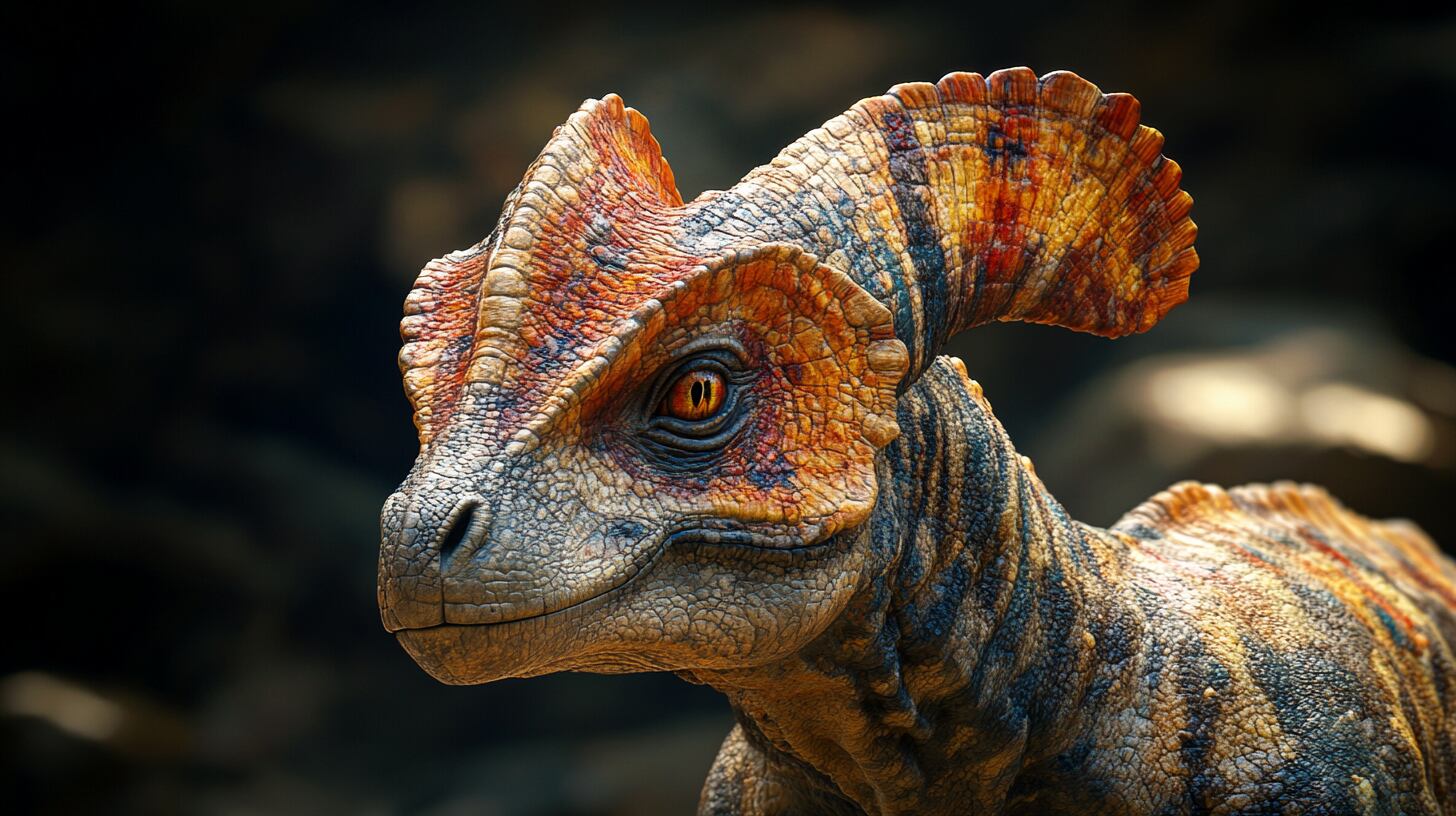 画像生成AI Midjourney(ミッドジャーニー)で創られた、岩場を歩むパラサウロロフスのフリー素材画像です。です。画像を購入した方は、クレジット表記やリンクは一切不要で個人・商用問わずお使い頂けます。迫力あるリアルな恐竜の写真をぜひフリー素材画像としてお使い下さい。