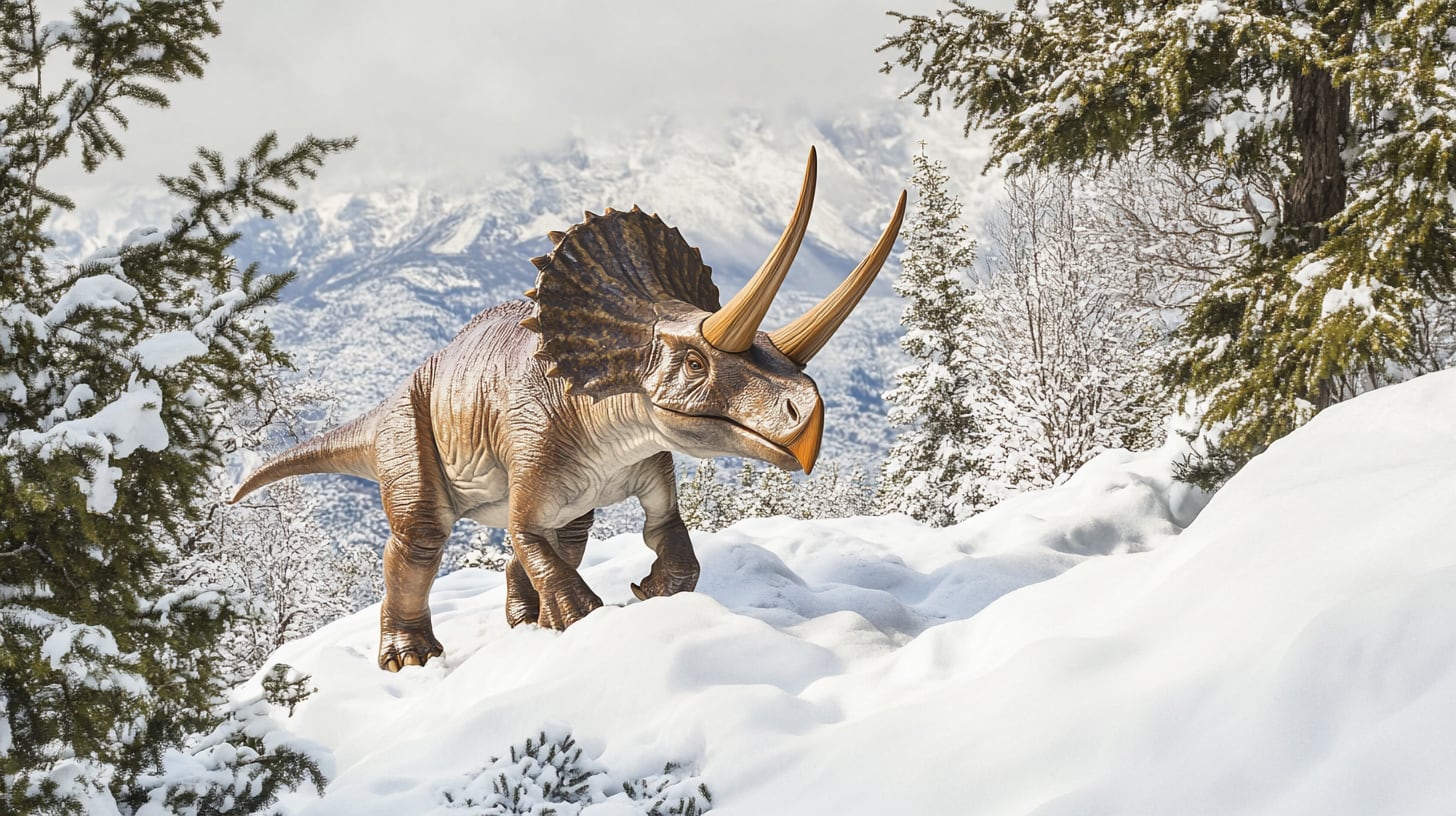 【デジタル恐竜シリーズ】雪山の鋭利・トリケラトプス【フリー素材 5枚セット】